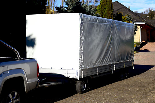 Anschaffung eines neuen Drehschemelanhänger mit Planenaufbau für den sicheren Transport von Material bis 6000 mm Länge.